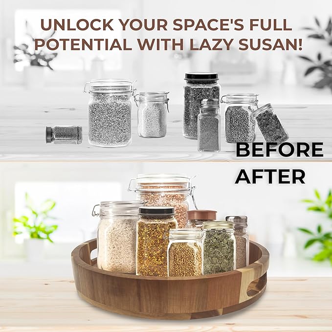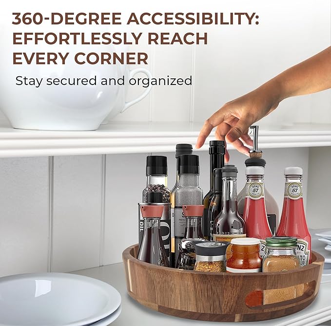 - ππ«π€π¨ππ¦ππ§π ππ₯πππ§π¦π ππ‘π¦πππ£ ππ‘ ππ¬π¬% ππππππ πͺπ’π’π - Elevate your space with our 12-inch wooden lazy susan for dining table, making the lazy susan spice rack organizer for cabinet a perfect addition to your kitchen, bedroom, or bathroom. No assembly required.