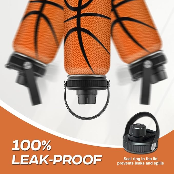 SANDJEST Basketball Water Bottle 32oz Stainless Steel Insulated Bottles for Men Women Sports Lovers Fan Players Coach - Basketball Gifts for Birthday Christmas