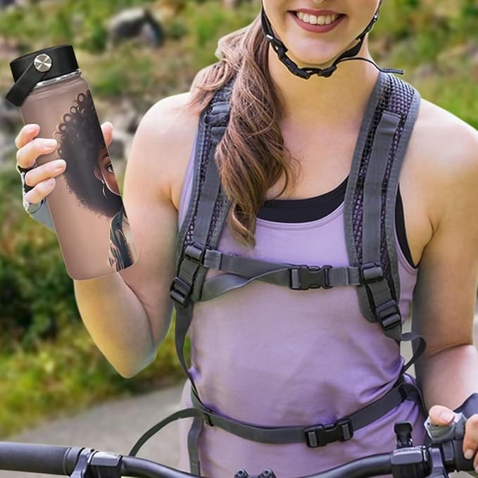 Magic Princess Teens Water Bottle 20 oz Insulated Water Bottle Afro American Stainless Steel Metal Flask Wide Mouth Bottle for Sports, Office, Travel Cup Keep Water Cold or Warm
