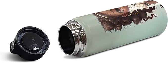 ZOUTAIRONG Black Afro Girl Insulated Water Bottle 20 oz Stainless Steel Sports Metal Water Flask African American Girls Water Cup Mug Reusable Water Bottle Jug for Daily Use, Travel, School