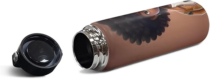 African Stainless Steel Water Bottle with Handle Vacuum Insulated Water Bottles 20 oz Metal Flask Afro American Travel Cup Coffee Mug Wide Mouth Bottle Leak Proof Reusable