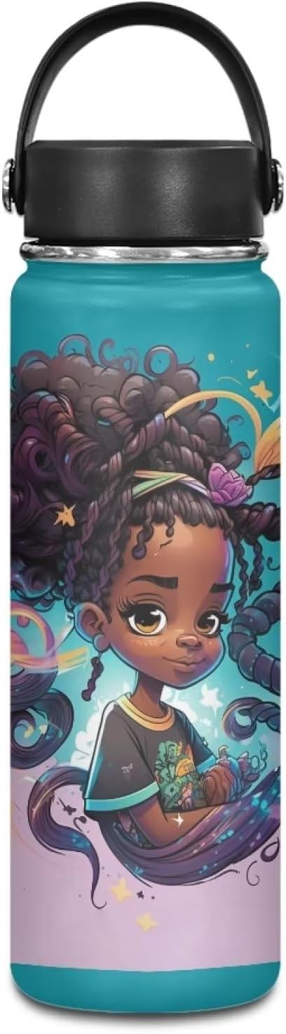 Afro American African Water Bottle 18 oz Insulated Water Bottles with Handle Flask Wide Mouth Bottle Vacuum Stainless Steel Metal Water Bottle for Sports, Gym, Office