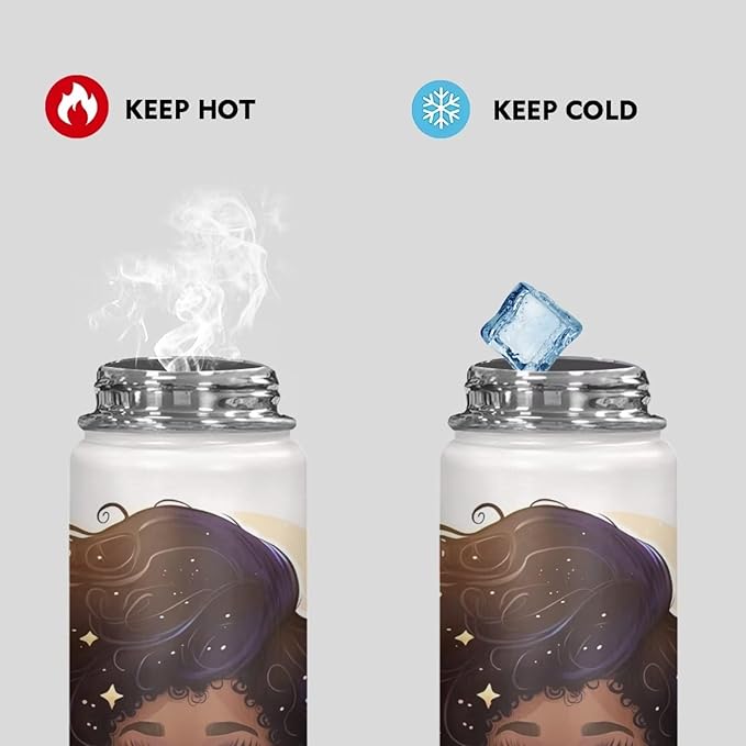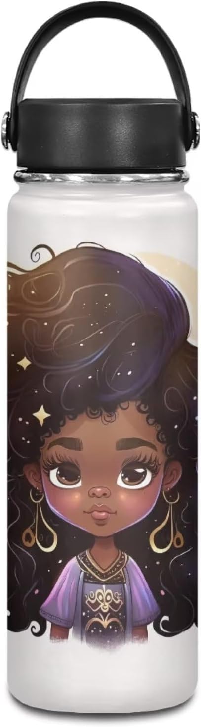 ZOUTAIRONG American Girl Insulated Water Bottle 18 oz Stainless Steel Bottle Reusable Wide Mouth Afican Water Bottle with Handle Thermal Mug Sports Water Bottles for Workout, Bike, Outdoor