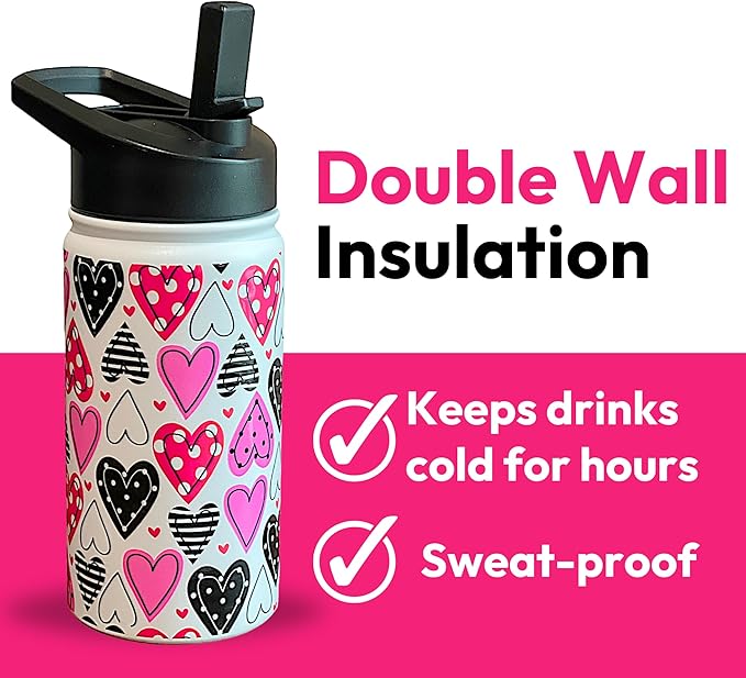 Biddlebee Kids Water Bottle with Straw Lid | 14oz Insulated Stainless Steel Reusable Bottles for School | Leak Proof Cap with Handle & Touch Free Spout | Great for Boys & Girls