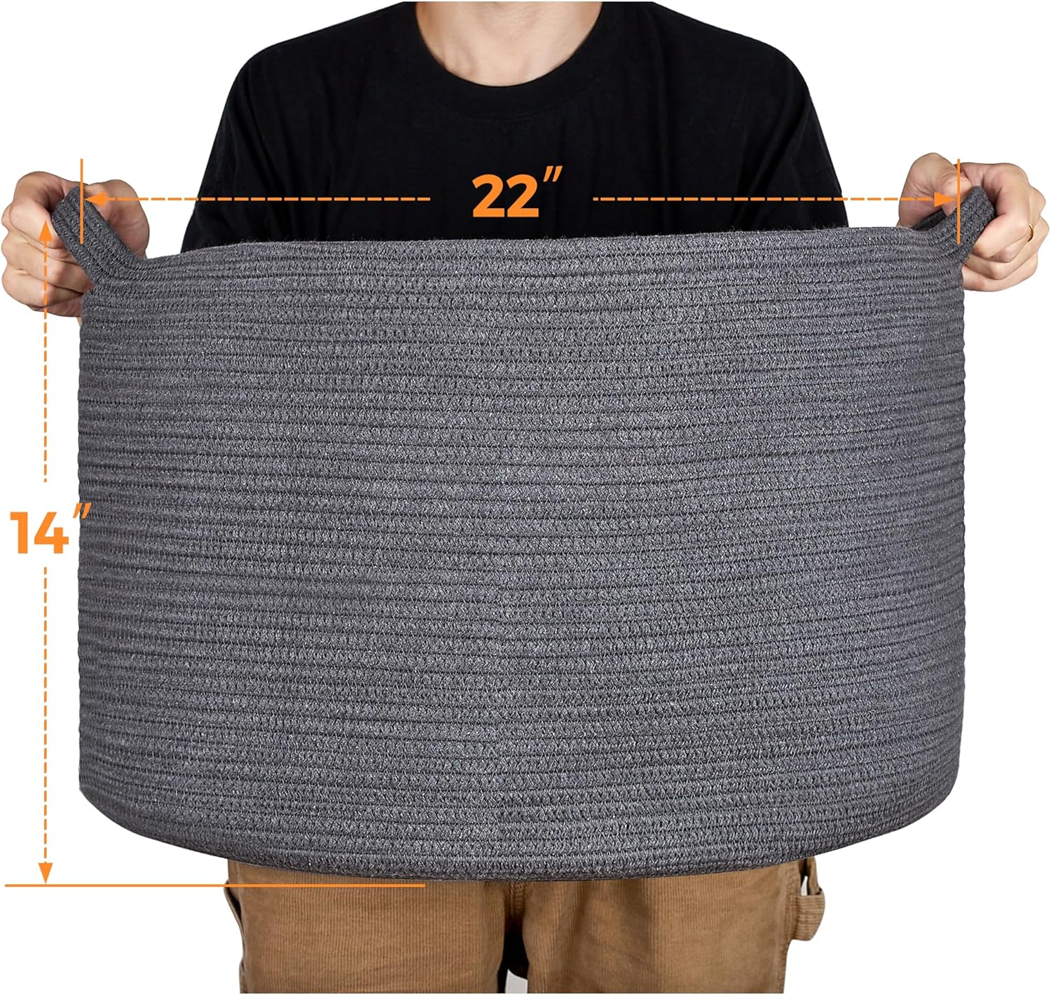 Ravinte Large Storage Basket - 22"x 22"x 14" Blanket Basket for Living Room, Baby Toy Storage Basket, Cotton Rope Basket Woven Laundry Basket (Gray)
