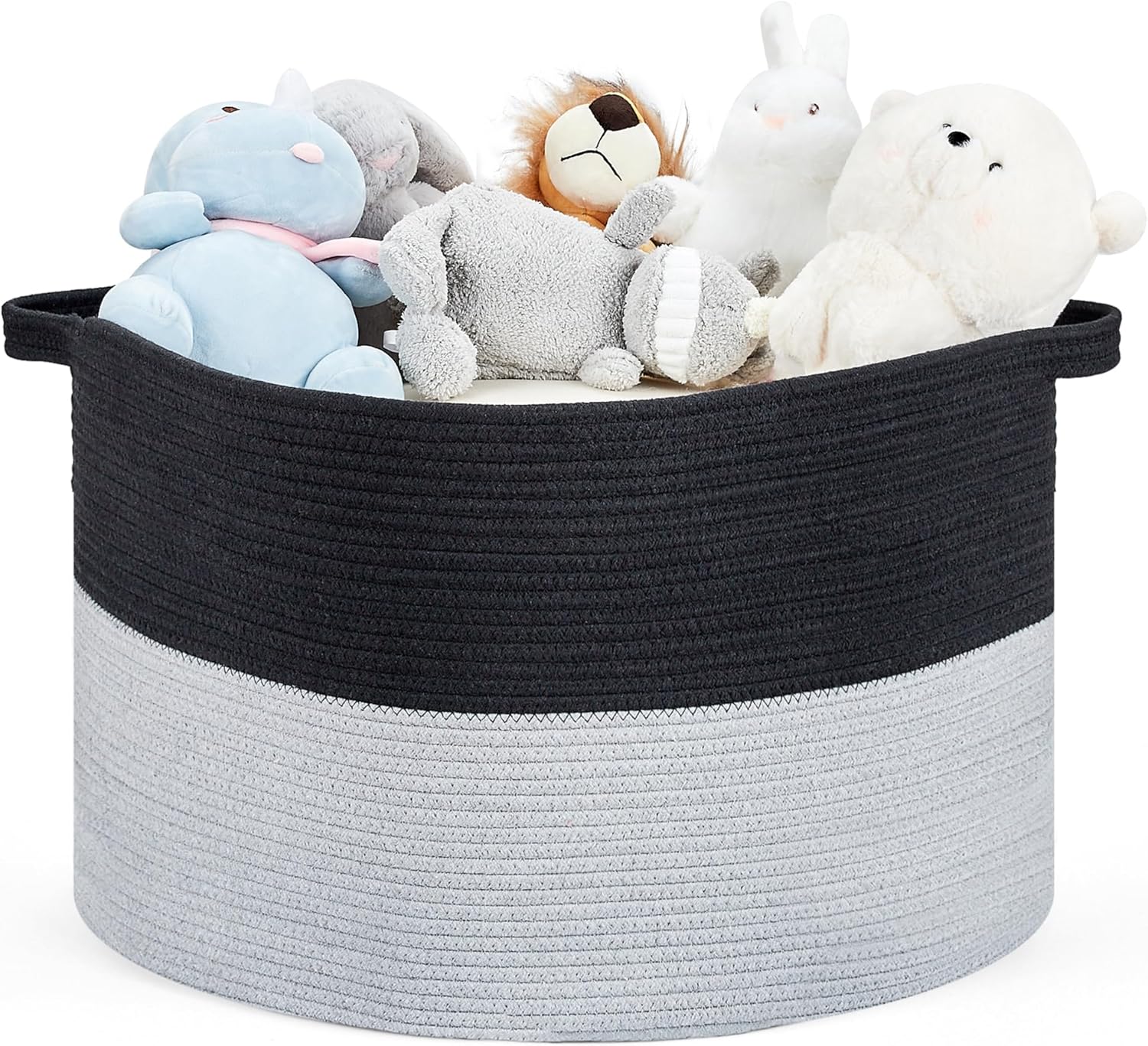 Ravinte Large Storage Basket - 22"x 22"x 14" Blanket Basket for Living Room, Baby Toy Storage Basket, Cotton Rope Basket Woven Laundry Basket (Black-Gray)