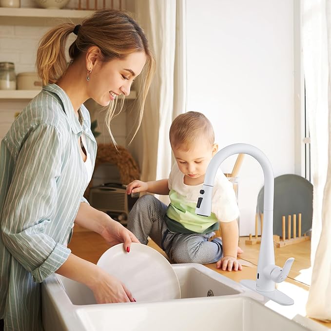 - Chic Matte White Color: Embrace with our HGHGK faucet in a mesmerizing matte white color,that elevate your kitchen. Included soap dispenser enhances functionality and tidiness, making culinary tasks effortless and organized.