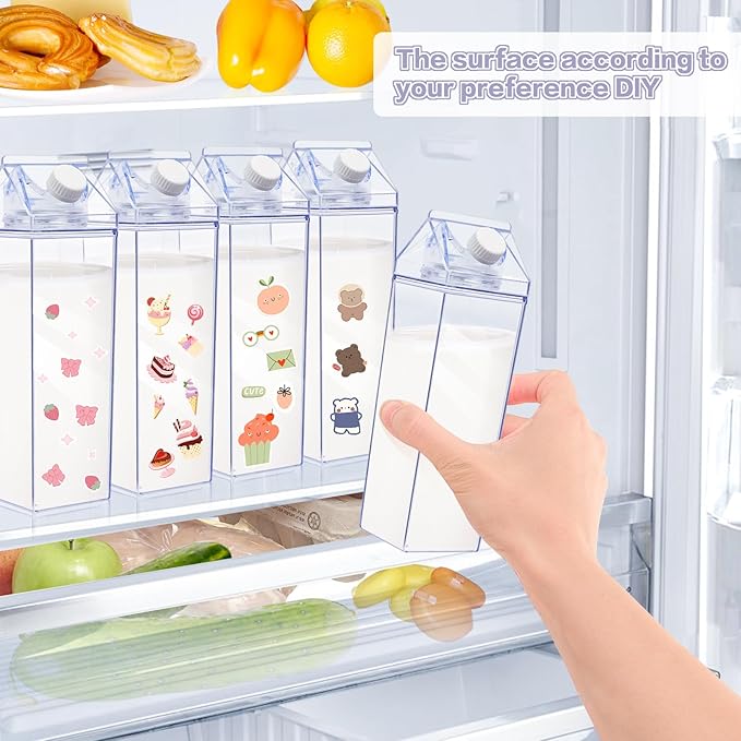 - 【Package Included】You will get 8 pieces of clear milk carton water bottles and 8pcs stickers, coming in transparent style, well matching with different colors of drinks, abundant quantity to use, replace and share with families or friends.