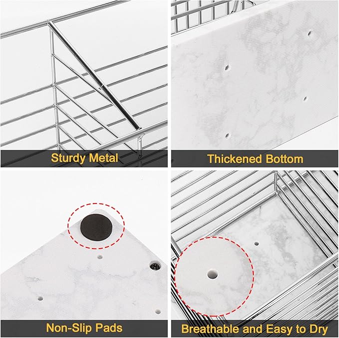 Utensil Holder for Kitchen Counter, Metal Utensil Holder Rack for Kitchen Countertop, Cooking Tools Storage for Spatula, Utensil Organizer with Sturdy Base, and Drainage Hole (Chrome Marble)