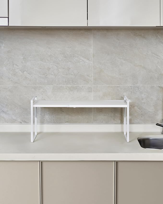 Nxconsu Cabinet Shelf Expandable Height Adjustable Shelf Organizer Riser for Kitchen Cabinet Pantry Cupboard Under Sink Countertop Organization Storage Space Saver Stackable Heavy Duty Metal White XL