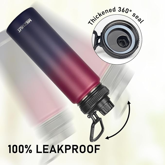 - â¨ăFulfills Your Needsă A high quality stainless steel water bottle, 1 nozzle cap, 1 flip straw cap, 1 jug cap, 2 straws and 1 straw brush, 1 cup cleaning brush. Meet your every need, make drinking easier and more convenient. Each lid is sealable and 100% leak-proof, so you don't have to worry about getting it wet in your bag. The large opening of the stainless steel water bottles allows you to quickly fill it with ice or fruit and cleaning is easier.