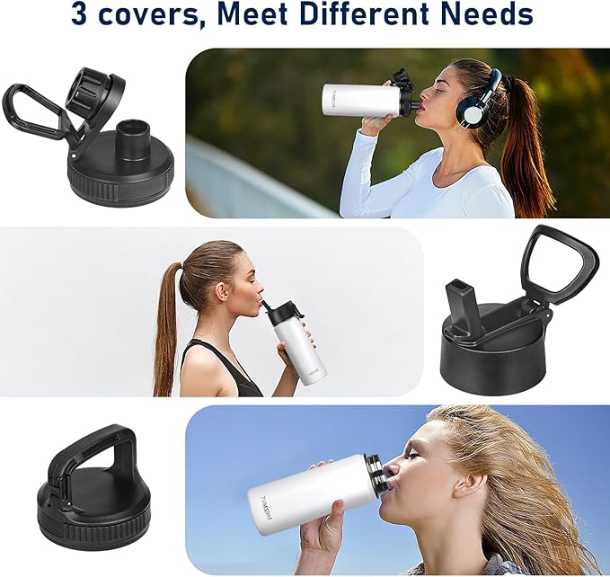- â¨ăFulfills Your Needsă A high quality water bottles kids, 1 nozzle cap, 1 flip straw cap, 1 jug cap, 2 straws and 1 straw brush, 1 cup brush. Meet your every need, make drinking easier and more convenient. Each lid is sealable and 100% leak-proof, so you don't have to worry about getting it wet in your bag. The large opening of the kids thermos allows you to quickly fill it with ice or fruit and cleaning is easier.
