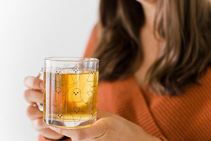 - Spooktacular Ghost Designs: Each clear glass mug is adorned with playful and friendly ghost illustrations that will bring a smile to your face.