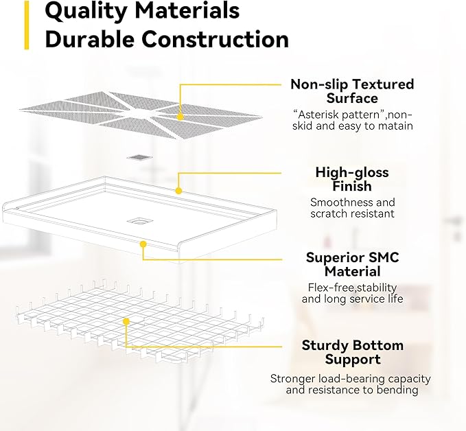 - Slip-Resistant Textured Surface: Enhanced with an intensive anti-slip texture, effectively preventing slips and save your shower space floor prep work