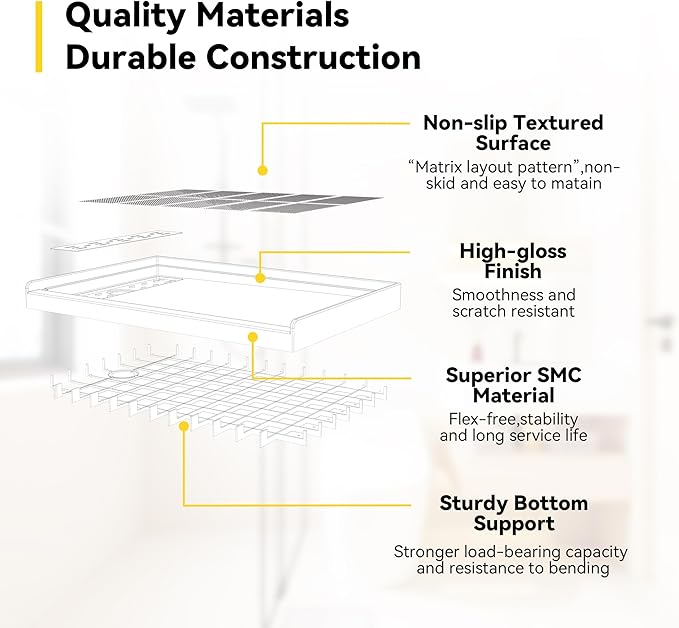 - Slip-Resistant Textured Surface: Enhanced with an intensive anti-slip texture, effectively preventing slips and save your shower space floor prep work