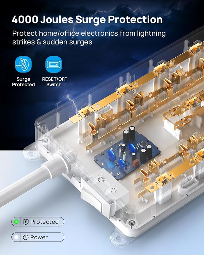 - 【Safety and Certificate】This wall mount power strip is ETL certified and combined with 4000 Joules surge protection, overload protection, over-current protection, short circuit protection, 1382℉ fire resistance shell, and more to protect you and your computer, TV, mobile phone, tablet, and office equipment from potentially damaging power disturbances