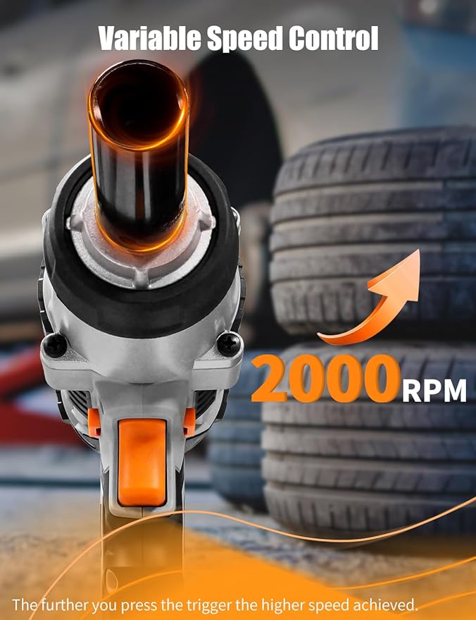 - INFINITELY SPEED CONTROL: You can effortlessly adjust the speed of your wrench from 0-2000 RPM with the trigger; The further you press the trigger, the higher speed achieved