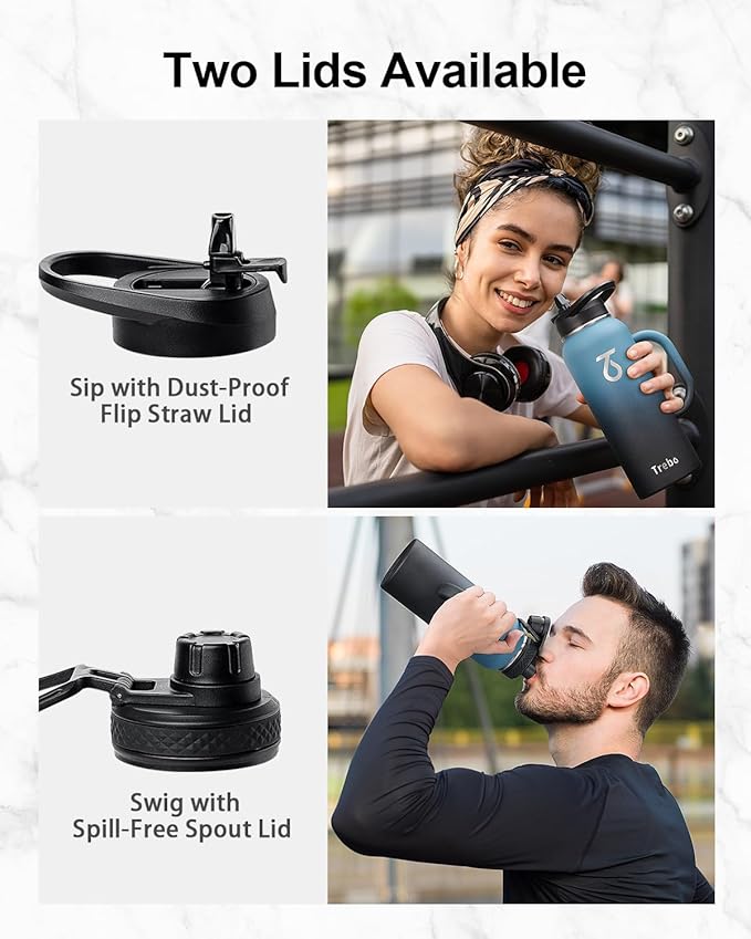 - No Spills, No Worries: Our stainless steel water bottle comes with a dust-proof flip straw lid and a spill-free spout lid, meeting your different needs. With accurate silicone seal rings, they are both 100% leak-proof and spill-proof.