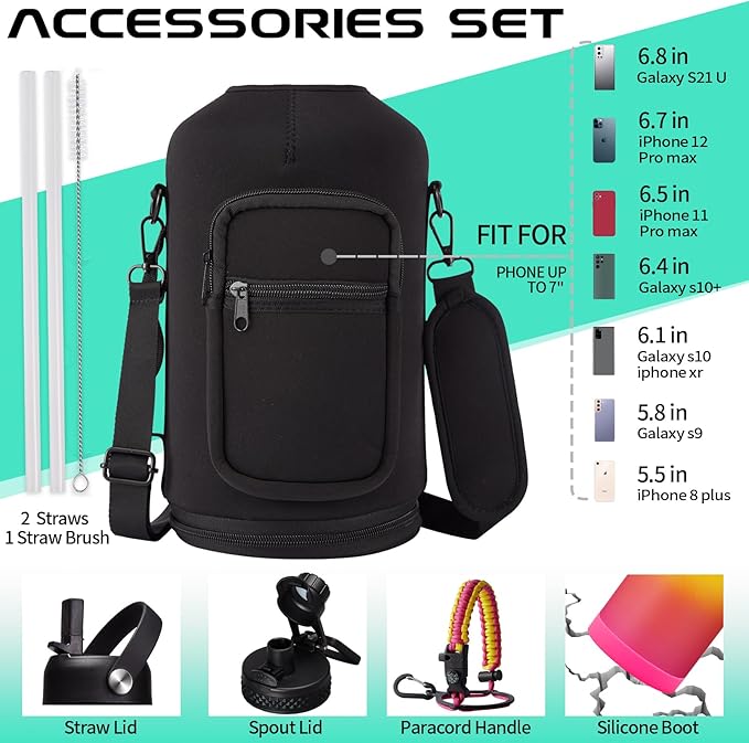 - SUPER JOYFUL COMBO: Buy a 128 oz insulated water bottle, get 9 accessories (2 x lids, 1 x survival paracord, 1 x carrying pouch, 1 x shoulder strap, 1 x protective cup boot, 2 x straws, 1 x straw brush). DIGJUPER provide a lifetime warranty and 7X24H customer service.