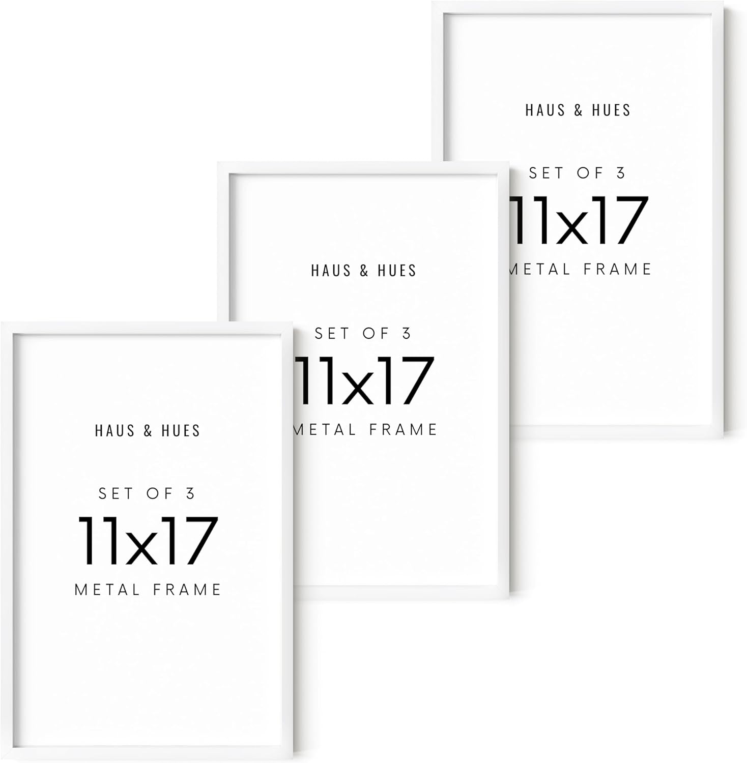 HAUS AND HUES 11x17 White Metal Picture Frames - Features Premium Aluminum, Vertical & Horizontal Hang, Shatterproof Plexiglass - Perfect for Home, Room, Office (11x17 in, White, Set of 3)