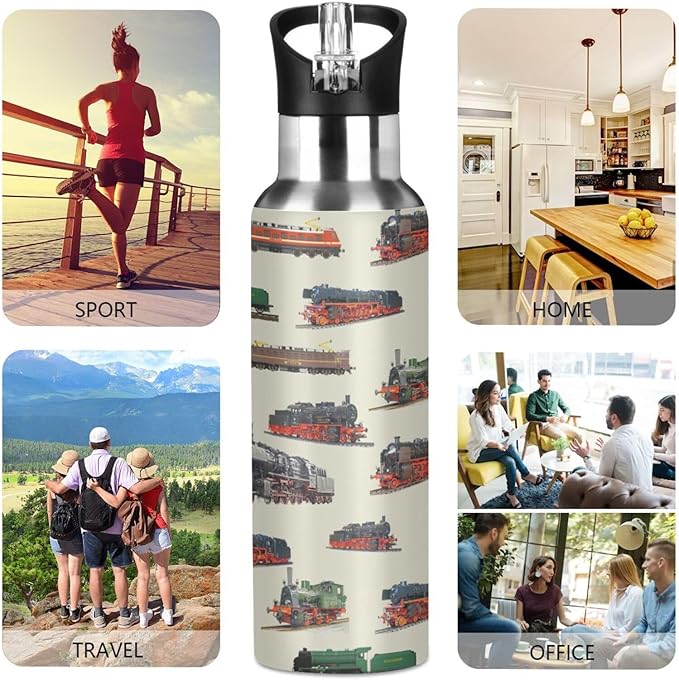 Train Stainless Steel Water Bottle with Straw Lid - 20 Oz Sports Insulated Water Bottle Thermos for Sport Gym Outdoor Travel School