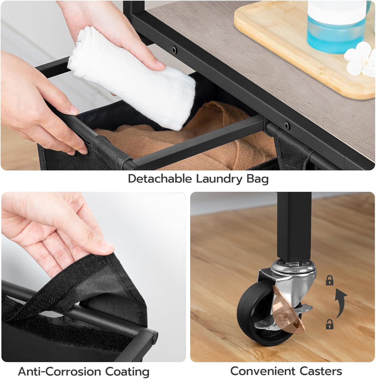 - Sturdy and Stable: Made of premium particleboard and thickened iron frame, this laundry hamper provides strong support. The shelf can withstand a maximum static load of 100 lb, while each bag can hold up to 30 lb