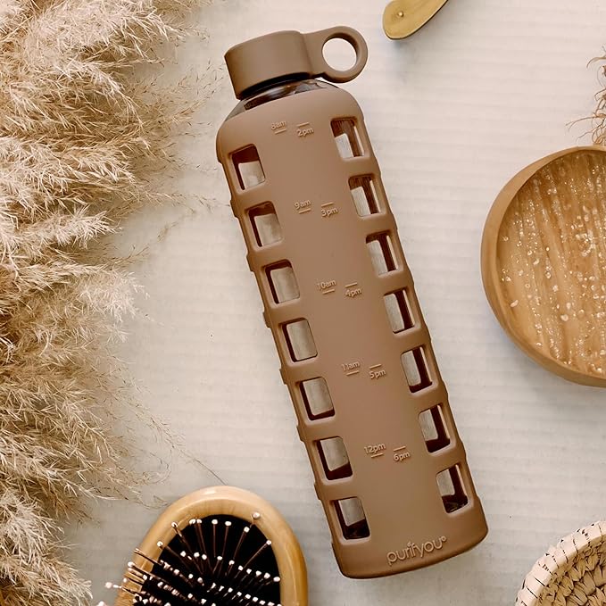 - Enhanced and Convenient: Elevate your daily hydration with our purifyou glass water bottles, equipped with Time and Volume Markings for effortless tracking. Ideal for various activities, from travel and outdoor adventures to gym sessions and office use, these bottles enhance your hydration experience.