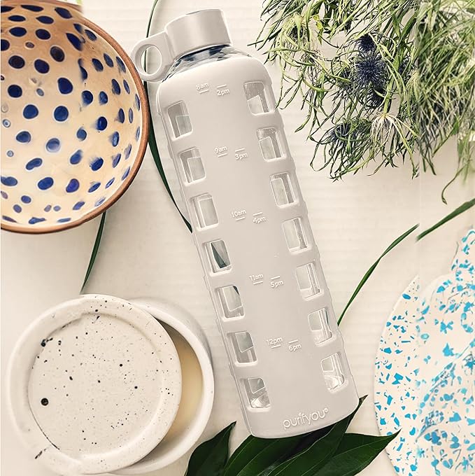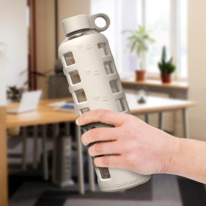 - Enhanced and Convenient: Elevate your daily hydration with our purifyou glass water bottles, equipped with Time and Volume Markings for effortless tracking. Ideal for various activities, from travel and outdoor adventures to gym sessions and office use, these bottles enhance your hydration experience.