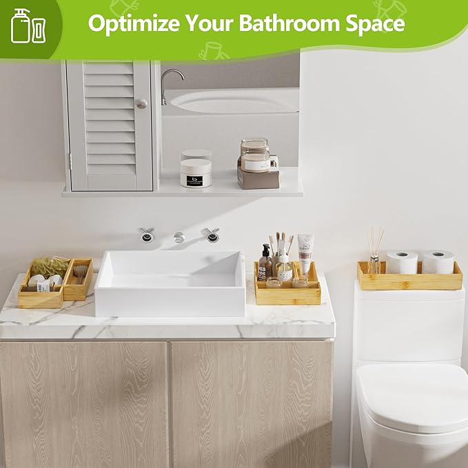 Silverware Bamboo Drawer Organizer Tray, 4 PCS Kitchen Drawer Organizer Storage for Utensil Cutlery, Bathroom, Office Desk, Makeup