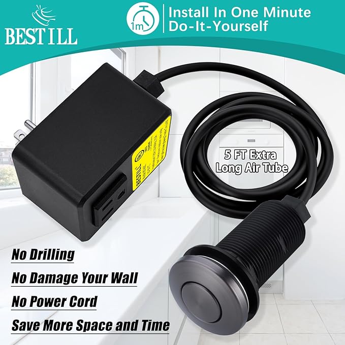 - SAFETY IS OUR FIRST PRORITY - The power module of BESTILL Garbage Disposal Air Switch Kit is UL Certified(NO. E530042), not just the power cord, it's more secure and reliable, without worrying about potential damages or safety risks.
