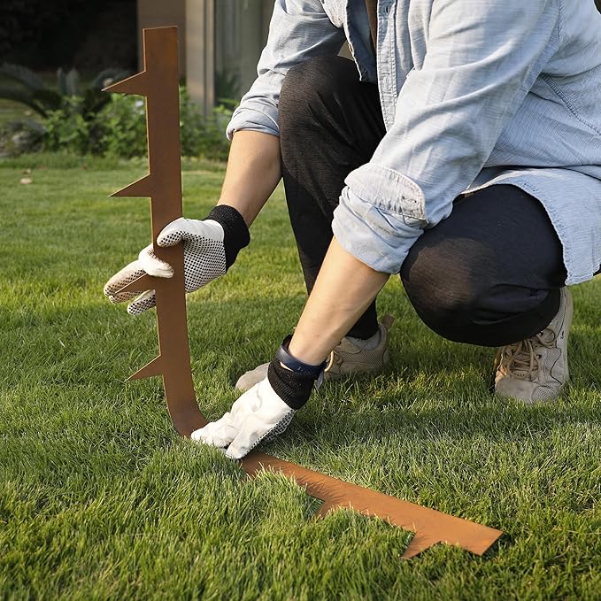 - Unique Rust Look: KOL weather resistant steel edging has been pre-rusted. No need to wait, get a beautiful rusted patina right away; The natural rust finish designed specifically for lawns, pathways, firepits, and gardens; The rust also forms a protective coating that resist the corrosive effects of all types of weather