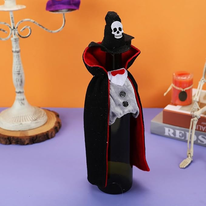 - Festive Decoration: The vampire decor wine bottle is ideal for wine party decorations, adding a festive look to your holiday. This Halloween wine bottle clothes set includes a cape and hat making your wine bottles stand out