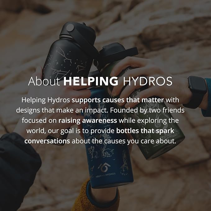 - HELPING HYDROS WATER BOTTLES: Creates uniquely engraved water bottles designed around causes doing good in the world. We partner directly with organizations to spread the word of the amazing work they're doing for the world.