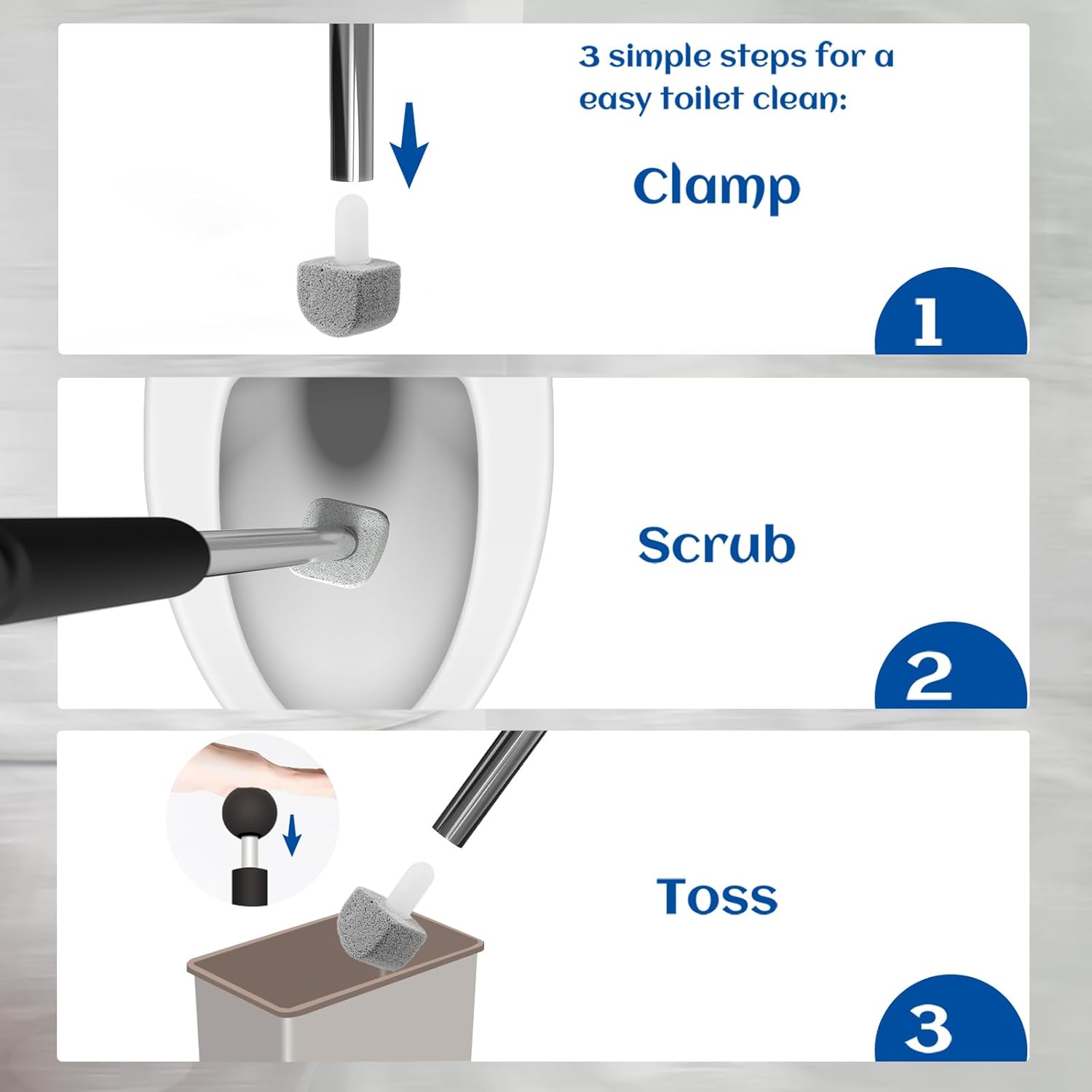 - Pumice Stone Pad for Toilet Cleaning:Works with Yingmore toilet handles designed to hold toilet scrubbing brushes. Test handle for secure hold before using pumice stone.(Only 10 packs pumice stone,the handle is not included)