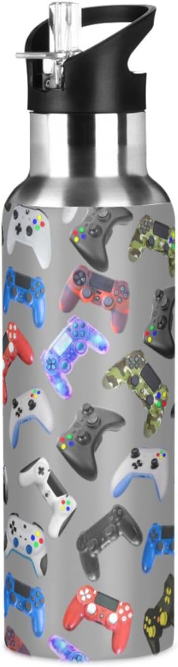 Gamer Gaming Weapon Gamepad Stainless Steel Water Bottle with Straw Lid - 20 Oz Sports Insulated Water Bottle Thermos for Sport Gym Outdoor Travel School (DZ003)