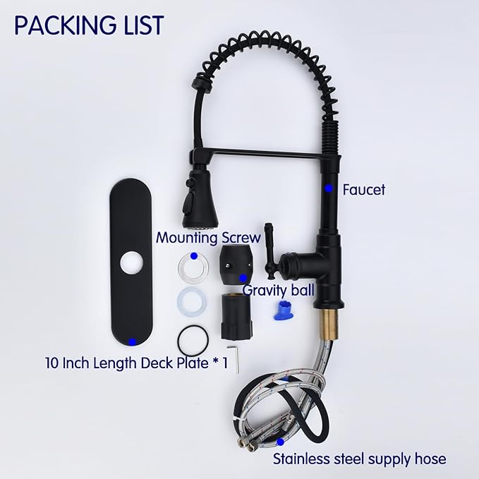 - 【EASY to INSTALL】 Designed to fit 1 or 3-hole,10 inch DECK PLATE included,Pull down hose and water line hoses pre-install in kitchen faucet to save much time under the sink.Clean faucet by cloth is enough in daily use.no require plumber,finish DIY installation less than 30 minutes.