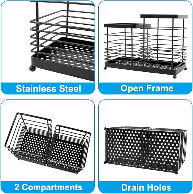 - Open Structure Spatula Holder: The open frame of this cooking utensil holder, and it is easy to clean and dry; Along with sinking bottom allows water to smoothly pass through for fast drying; Cleaning only requires a wipe with a damp cloth.