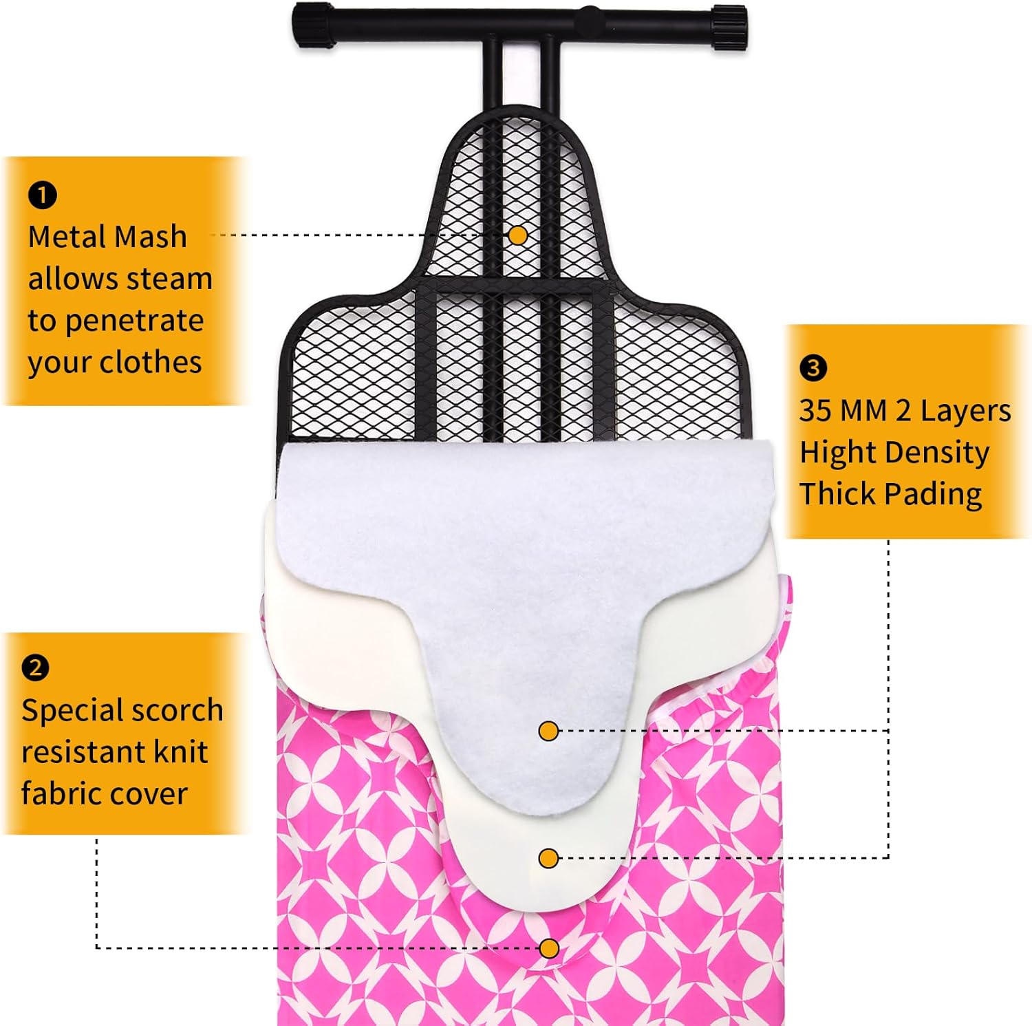 Extra Large Ironing Board with Hang Rail and Iron Rest 63" L x 20" W (Large with Iron Rest (Pink Cover))
