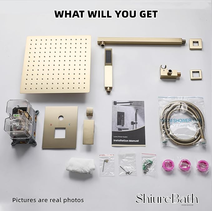 - WHAT WILL YOU GET: Detailed instructions in the package, this shower faucet set with a valve easily according to the instructions. Shower system include: 10" Square rain shower head(304 stainless steel), handheld shower head(Brass), 15.7" shower arm(Metal), 59" shower hose(304 stainless steel), shower holder(Brass), water control valve(Brass), If you need help, please contact us 626-781-1137 (Pacific time from 9: 00am to 5: 00pm)