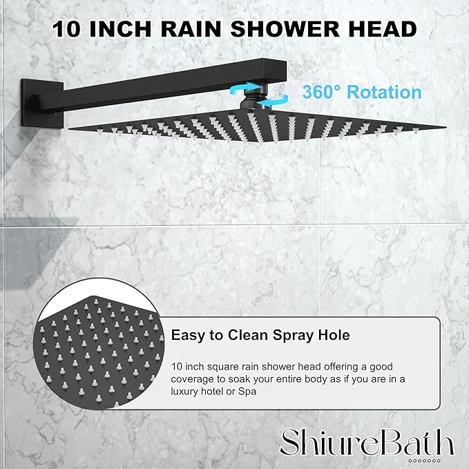 - Pressure Balance Shower Valve: SHIUREBATH shower system is crafted from solid brass, our Shower Fixtures with a rough-in valve, no bursting or water leakage even in extremely cold environments. The pressure-balancing valve ensures stable water temperatures, preventing abrupt fluctuations