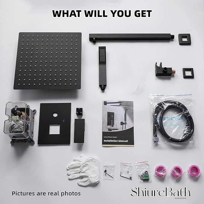 - WHAT WILL YOU GET: Detailed instructions in the package, this shower faucet set with a valve easily according to the instructions. Shower system include: 10" Square rain shower head(304 stainless steel), handheld shower head(Brass), 15.7" shower arm(Metal), 59" shower hose(304 stainless steel), shower holder(Brass), water control valve(Brass). If you need help, please contact us 626-781-1137 (Pacific time from 9: 00am to 5: 00pm)