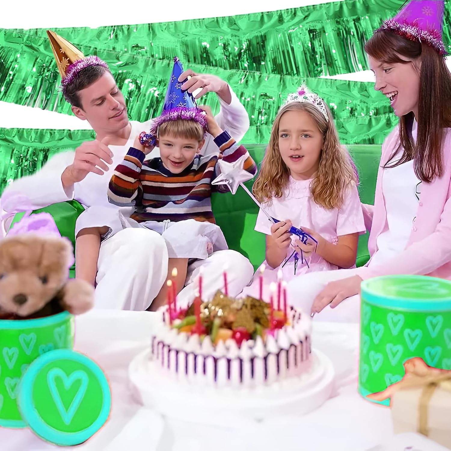 Green Foil Fringe Garland 10FT 6packs, Metallic Foil Tinsel Fringe Banners for Parade Float Decorations Wedding, Birthday Party Graduation (six Green)