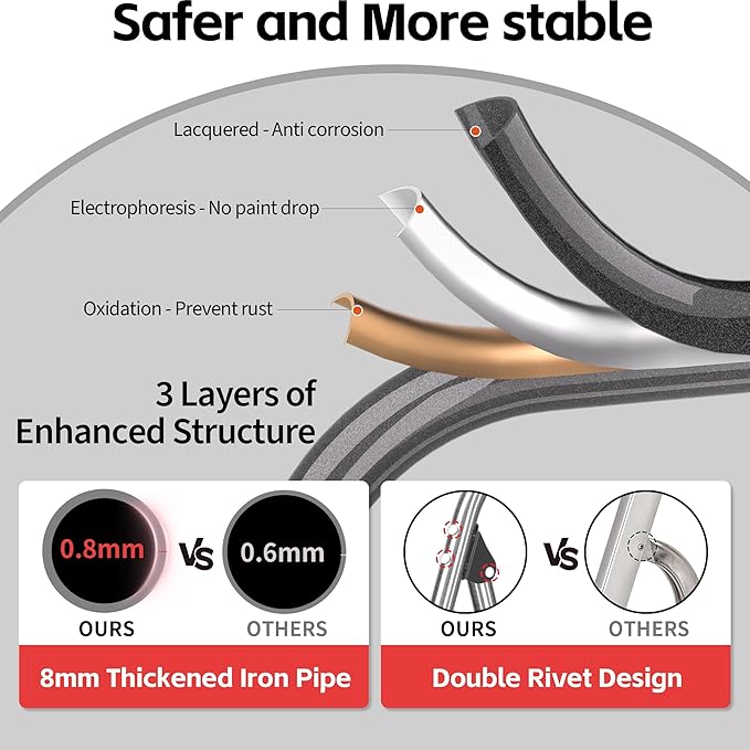 - Safety Upgrade: The 3 step ladder has a dual rivet design, reinforced steel bars at the bottom, and a secure locking mechanism with three safety latches. Press the top step to engage the safety lock automatically for stability and safety.