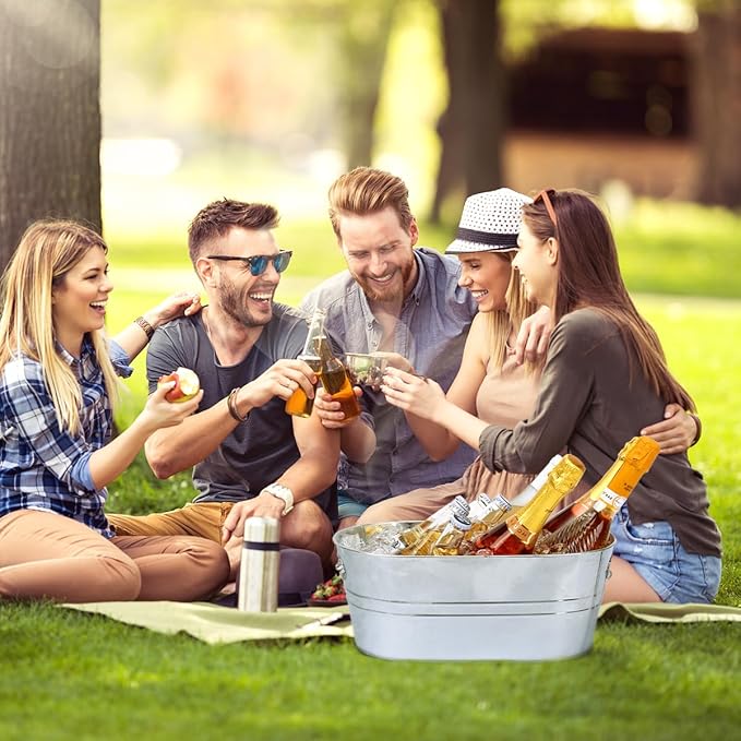 - 【LARGER SIZE】- The larger size of the galvanized tub allows for greater capacity, making it perfect for large gatherings and events. Whether you're hosting a backyard BBQ or a party with friends, the ice buckets for parties can hold enough drinks to keep everyone satisfied.