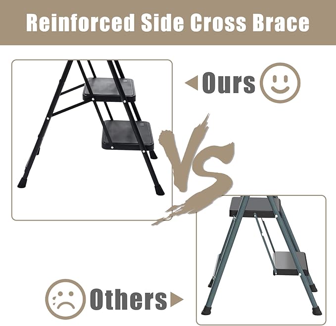 - Extra Long Top Handgrip for Extra Safety---This safety ladder with long, padded handrails on top provide a soft and comfortable grip you can rely on, which make you more confident when using