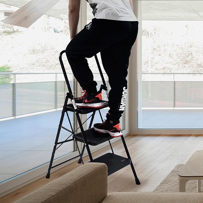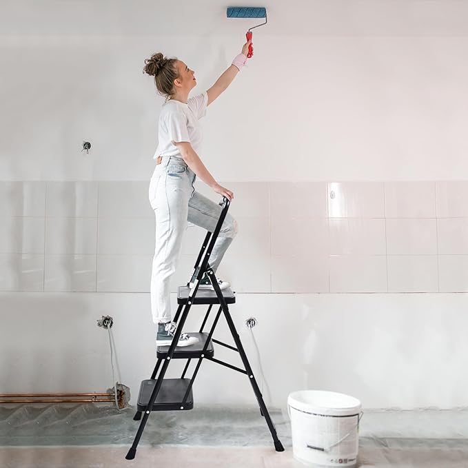 - Lightweight & Portable---Our 3 step ladder weighs only 14 Lbs, convenient for carrying, can be easily used for outdoor and indoor