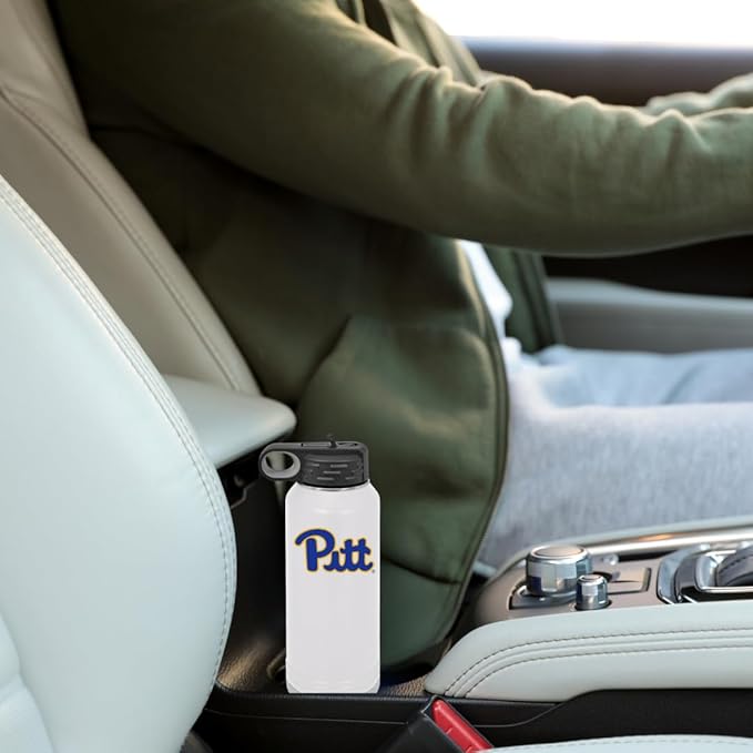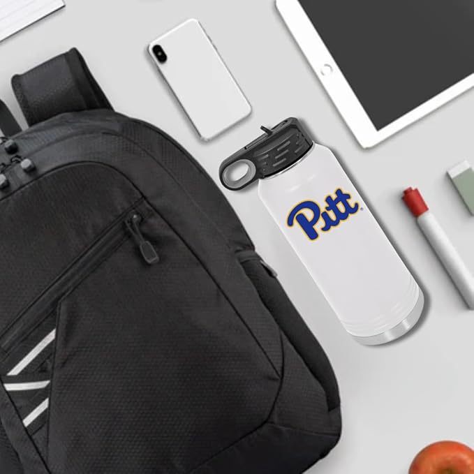 University of Pittsburgh 32oz Stainless Steel Double Walled White Beverage Bottle with Flip Straw Spout - College Gear for Playoff Season – For Office, Home or Auto – Show your Panthers Pride