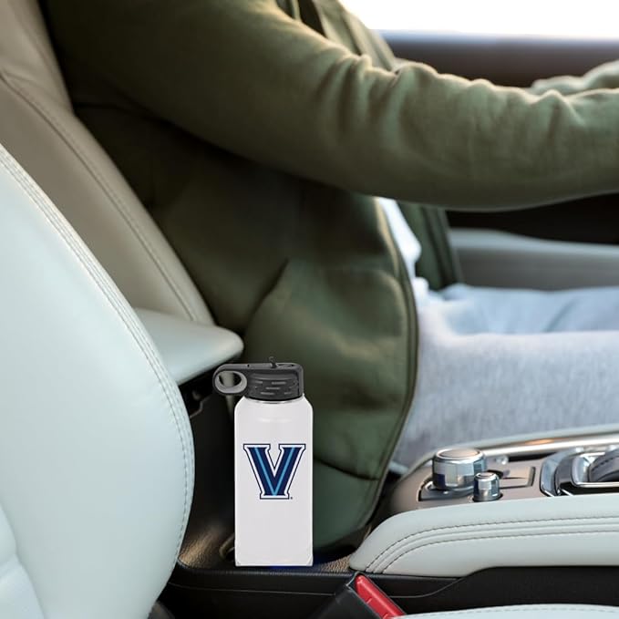 Villanova University Wildcats 32oz Stainless Steel Double Walled White Beverage Bottle with Flip Straw Spout - College Gear for Playoff Season – For Office, Home or Auto – Show your Wildcat Pride