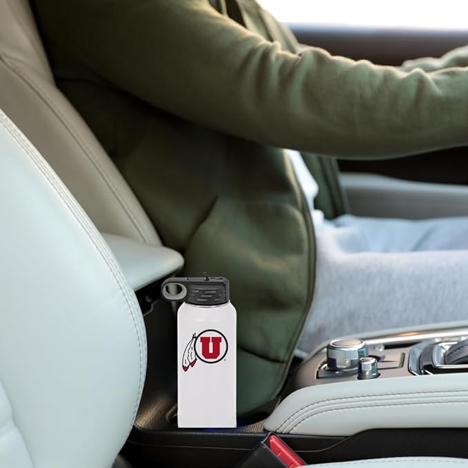 University of Utah 32oz Stainless Steel Double Walled White Beverage Bottle with Flip Straw Spout - College Gear for Playoff Season – For Office, Home or Auto – Show your Utes Pride