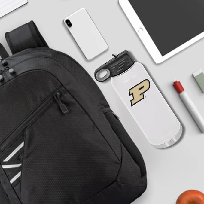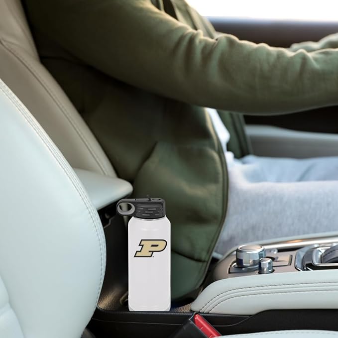 Purdue University 32oz Stainless Steel Double Walled White Beverage Bottle with Flip Straw Spout - College Gear for Playoff Season – For Office, Home or Auto – Show your Boilermaker Pride